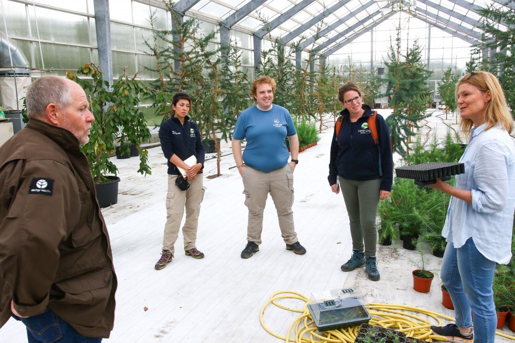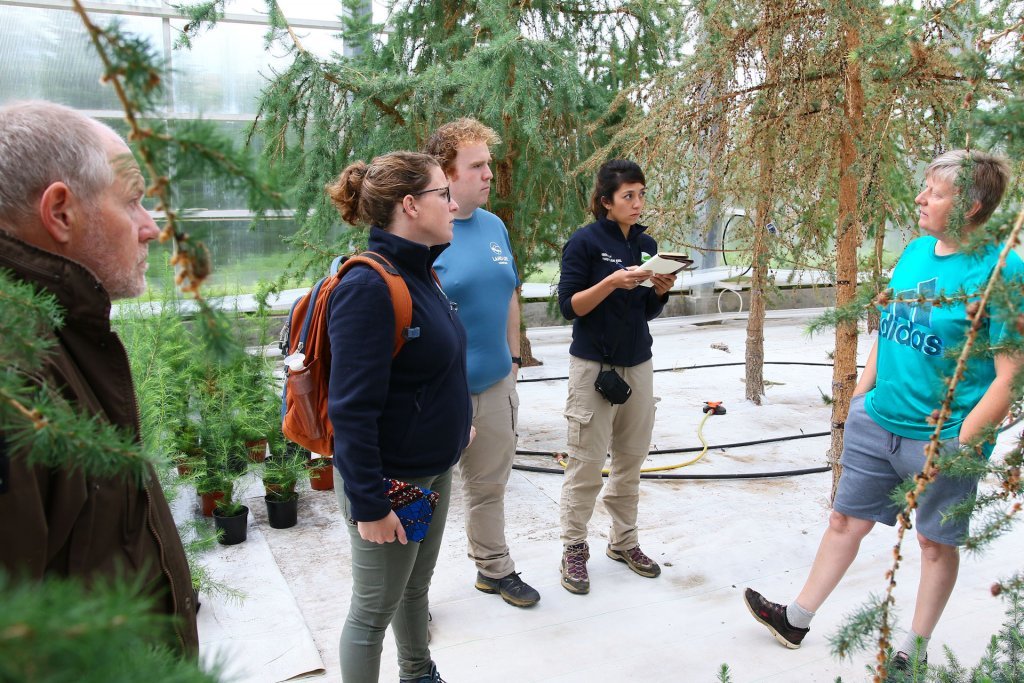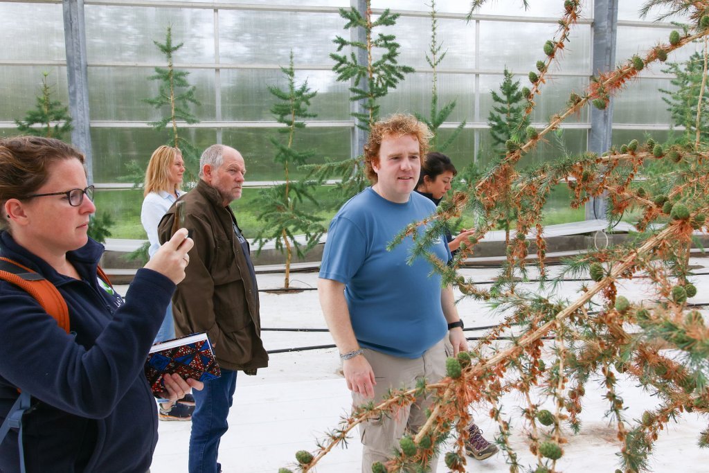 Fulltrúar Land Life og Skógræktarinnar stöldruðu við í Vaglaskógi þriðjudaginn 24. ágúst og fengu þar að kynnast fræframleiðslu á lerkiblendingnum Hrym ásamt kynbótastarfi Skógræktarinnar á mismunandi trjátegundum. Valgerður Jónsdóttir, verkefnastjóri fjölgunarefnis, sagði frá því. Rakel Jónsdóttir, sérfræðingur á rannsóknasviði, sagði frá rannsóknum sínum, meðal annars tilraunum á fjölgun lerkis með stiklingum sem lofa góðu. Rúnar Ísleifsson sýndi hópnum svo bálskýlið sem er í smíðum í Vaglaskógi, sagði frá starfsemi skógarvarðarins á Norðurlandi og fór loks með gestina um ungan skóg á Hálsmelum þar sem voru berir melar fyrir rúmum 30 árum en er nú gróskumikill og gjöfull skógur, gott dæmi um endurreisn skógarvistkerfis sem fellur að markmiðum Land Life Company.