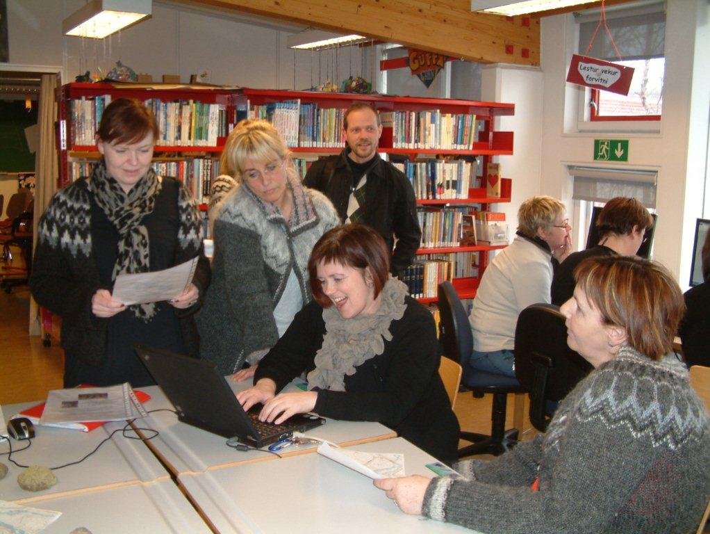 Í dag voru fyrstu símenntunarskrefin tekin með starfsfólki skólans. Jón Hákon Bjarnason fór í gegnun kortagrunninn og nytjaáætlunina og gerði grein fyrir helstu verðmætum svæðisins, einkennum og þeim möguleikum sem í því felast fyrir skógartengt útinám. Brynjar Ólafsson kynnti drög að nýrri aðalnámskrá grunnskóla sem er í vinnslu út frá markmiðum um sjálfbæra þróun og hvernig þau birtast og vinna má með þau í skógartengdu útinámi. Brynjar álítur að skógurinn sé sérlega góður vettvangur til að ná þeim markmiðum. Hann tengdi kenningar í uppeldisfræði og kennslufræði við markmið um sjálfbæra þróun í skólastarfi sem auðveldaði skilning á hagnýtum verkefnum vegna sjálfbærrar þróunar. Gunnar Gunnarsson íþróttafræðingur sem ný kominn er frá Noregi eftir 16 ára dvöl, sagði frá störfum sínum og menntun á sviði endurhæfingar og heilsueflingar í útivist með náttúrutengingum. Að lokum unnu þátttakendur hugmyndir að nýjum verkefnum á grunni nytjaáætlunarinnar undir stjórn Rannveigar, skólastjóra og Önnu Sigríðar, verkefnisstjóra í útinámi skólans.