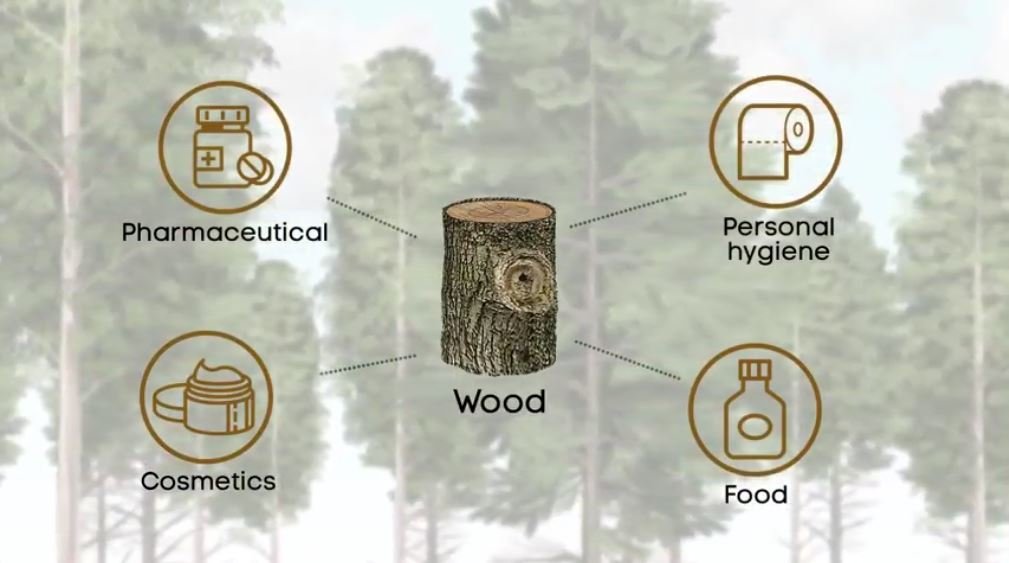 Framleiðsluvörur sem eiga uppruna sinn í skóginum ná yfir breitt svið. Meira að segja á þetta við um fyrirbæri eins og grillsósur, rjómaís, sykurþykkni, mjólkurvörur, safar, hundamat, lökk, lyfjabelgi, nátt­úr­leg vatnsvarnarefni, sótthreinsiefni, sápur, síur, fatnað, klæði, snyrtivörur og bleiur en líka aug­ljós­ari hluti eins og pensla, pappír, umbúðir, spónaplötur, parket og bækur. Einnig er talað um elds­neyti, leysiefni, lím, málningu, rotvarnarefni, koltrefjaefni, tjörupappa og fleira.