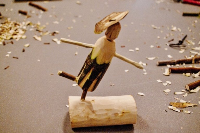 Námskeiðið var tvískipt og lærðu þátt­tak­end­ur öruggu hnífsbrögðin fyrri daginn en þann seinni var áhersla lögð á að búa til ýmiss konar fígúrur og dýr með samsetn­ingu á þurru og fersku greinaefni sem auðvelt er að finna í nágrenninu með grisjun og umhirðu trjá- og runnagróðurs.