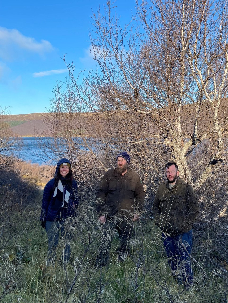 Hanna Kirkland frá Mossy Earth, Valdimar Reynisson skógræktarráðgjafi og Jón Auðunn Bogason skógarvö…