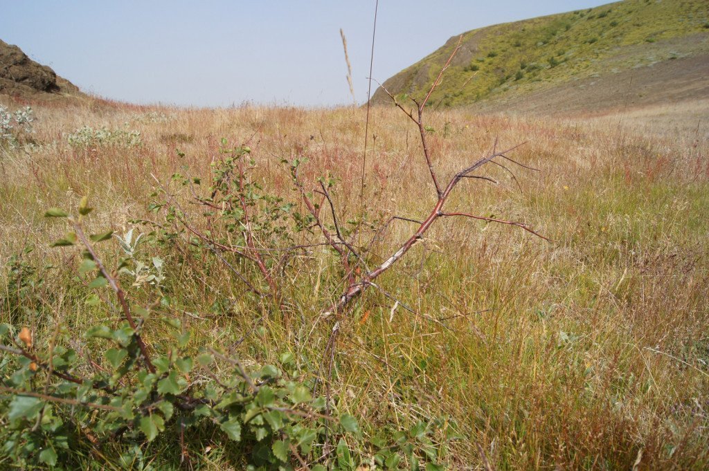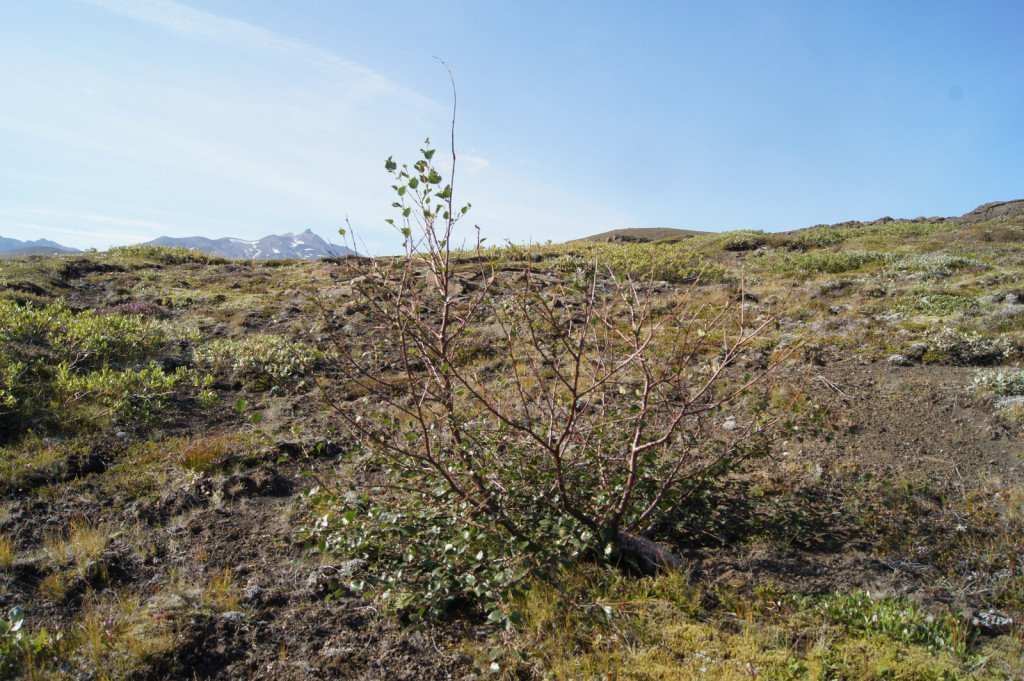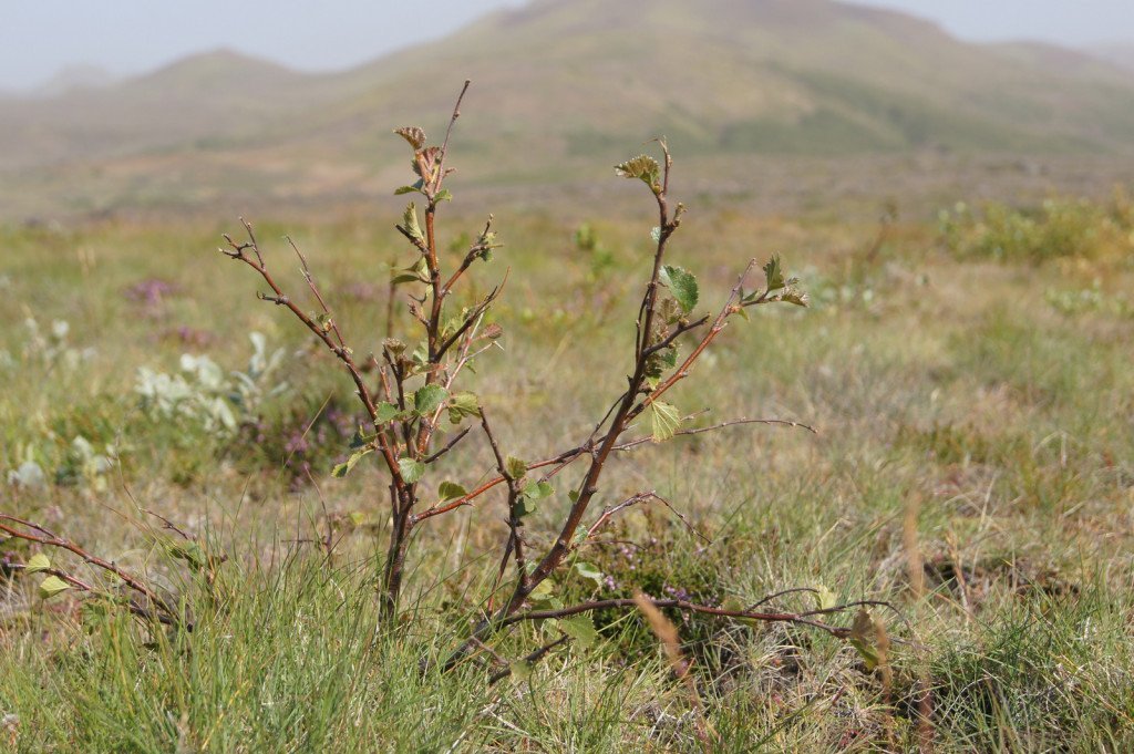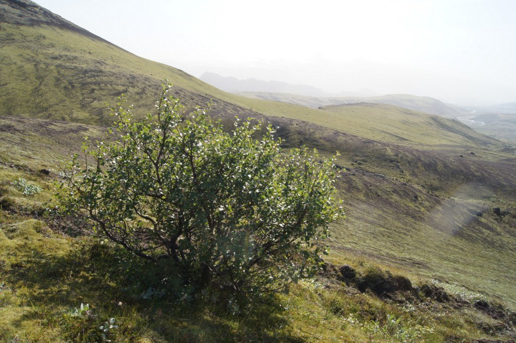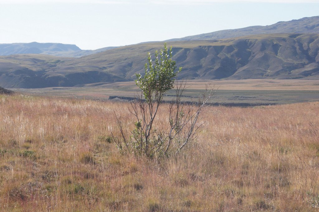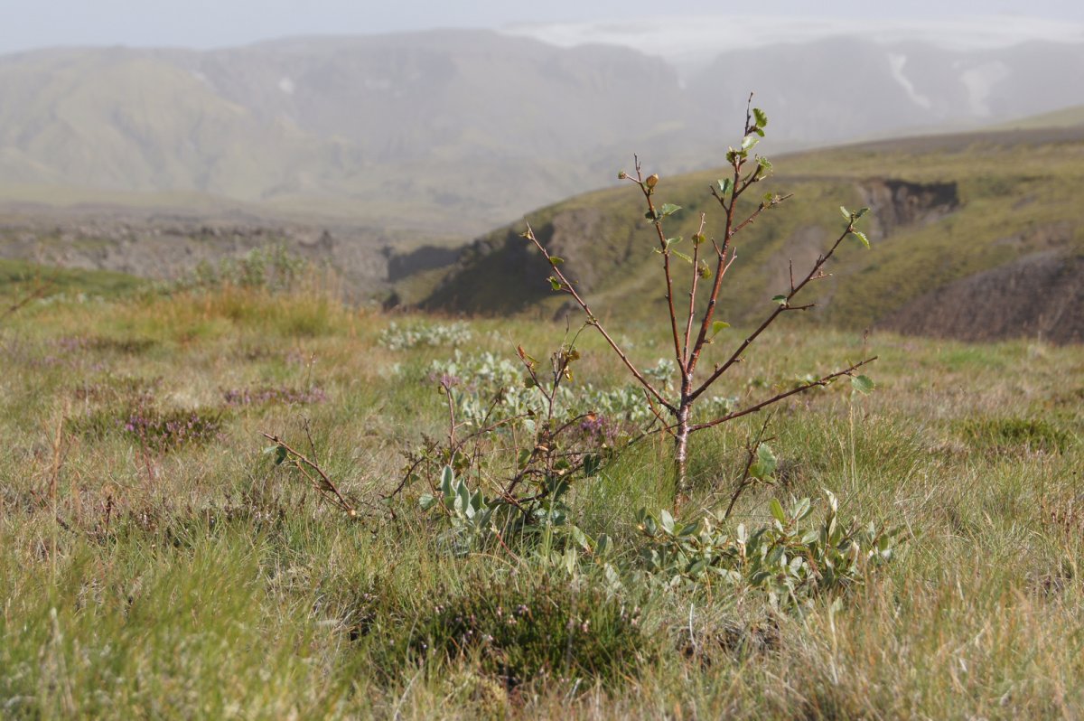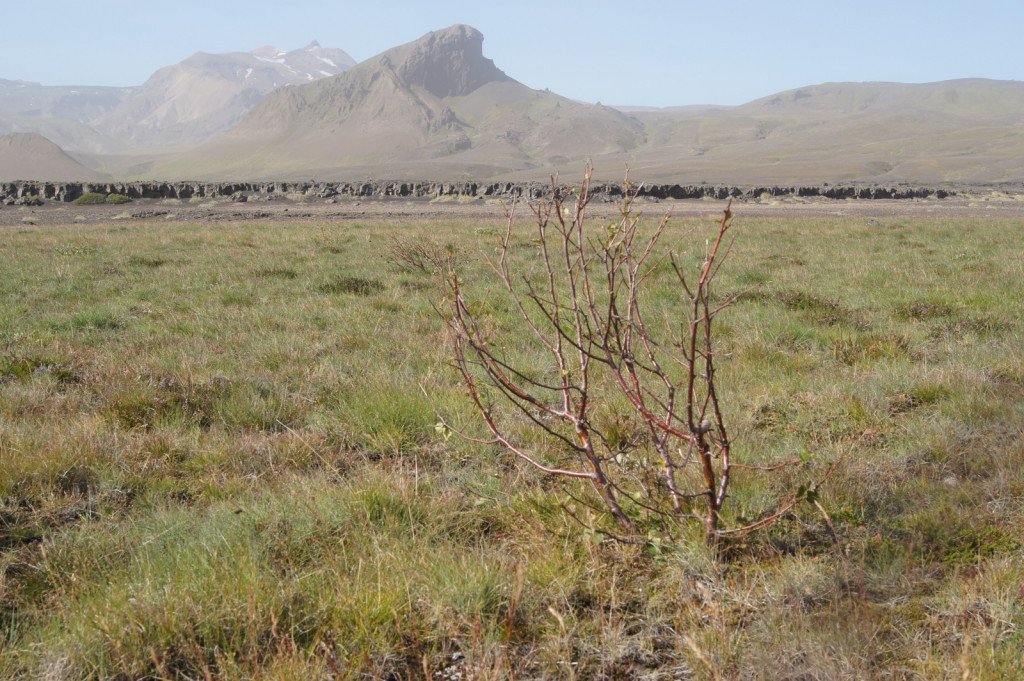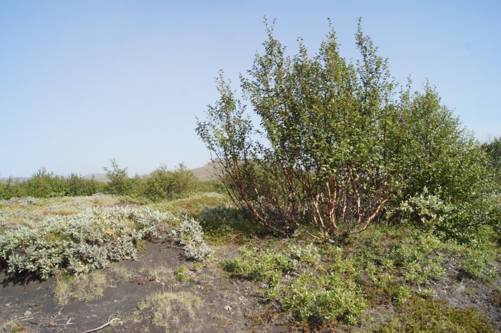 Nagað birki á Almenningum ofan Þórsmerkur þegar beit var hafin þar á ný eftir áralanga friðun. Mynd: Hreinn Óskarsson.