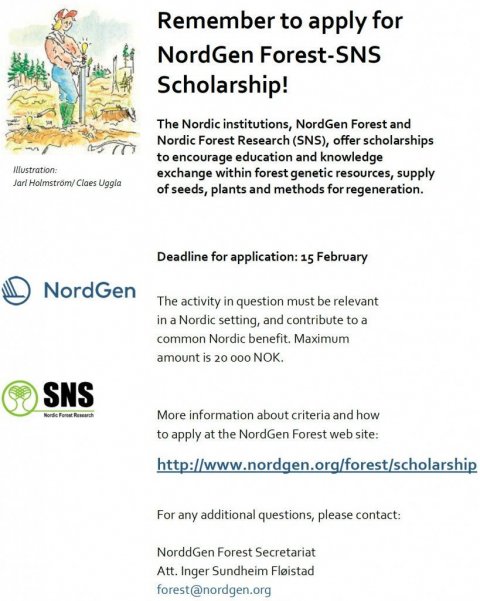Norræna skógerfðafræðistofnunin NordGen Forest og norræna skógvísindastofnuninni SNS auglýsa sameiginlega námsstyrki sem ætlað er að hvetja til menntunar og þekk­ingarmiðlunar um erfðaauðlindir skóga, fræ- og plöntuframleiðslu og aðferðir við endurræktun skóga.