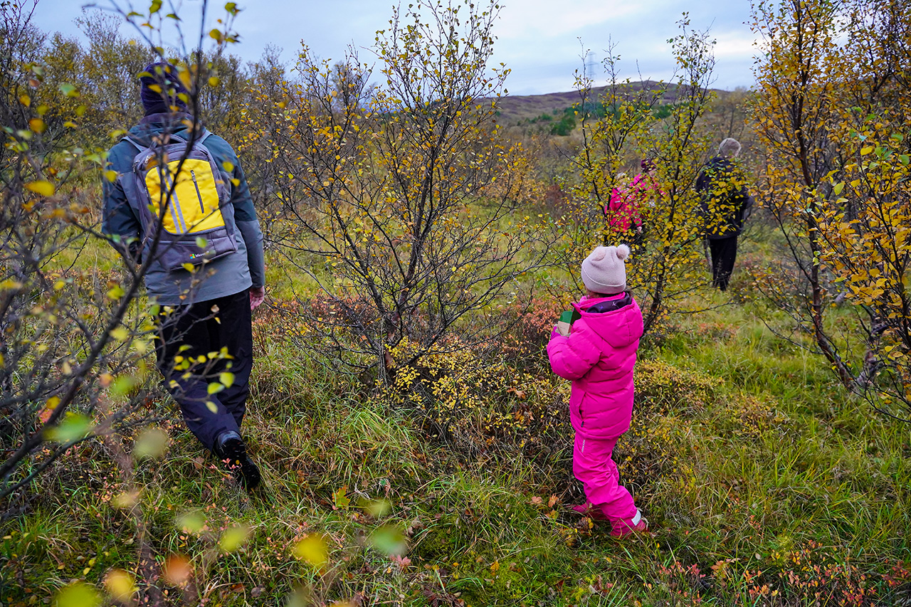 Frætínsla er afbragðsgóð upplifun og samvera fyrir fólk á öllum aldri með hressandi útivist og hreyfingu. Ljósmynd: Kristinn H. ÞorsteinssonJafnvel þótt nokkuð hafi verið talað um að lítið sé um fræ á birki á Suðvesturlandi þetta árið reyndist ekki erfitt að finna fræ í Guðmundarlundi. Fræmagn birkis er vissulega undir meðallagi á höfuðbogarsvæðinu í ár en það þýðir einungis að svolítið meira þurfi að leita að gjöfulum trjám. Um 10% birkitrjáa bera fræ þetta árið á svæðinu. Á þeim trjám sem á annað borð bera fræ má oftast finna talsvert magn þannig að auðvelt er að finna þau og fljótlegt að tína.