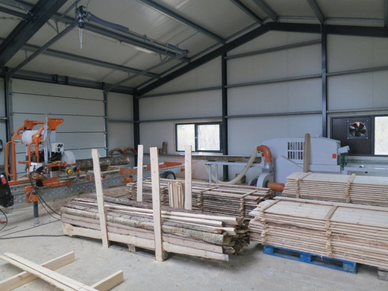 Skemman nýja var reist í fyrrahaust og með henni færðist undir þak ýmis starfsemi sem fram að því hafði verið sinnt undir berum himni og í lélegum skúrum. Timburvinnslu verður ekki sinnt með góðu móti utan dyra á Íslandi og aðstöðuleysi hefur fram að þessu sett þessari starfsemi þröngar skorður í Þjórsárdal. Þar eru mikilr greniskógar sem komnir eru á það stig að sífellt meira er hægt að taka út úr þeim af flettingarhæfu efni. Því var algjörlega tímabært að koma upp sögunarmyllu á staðnum.