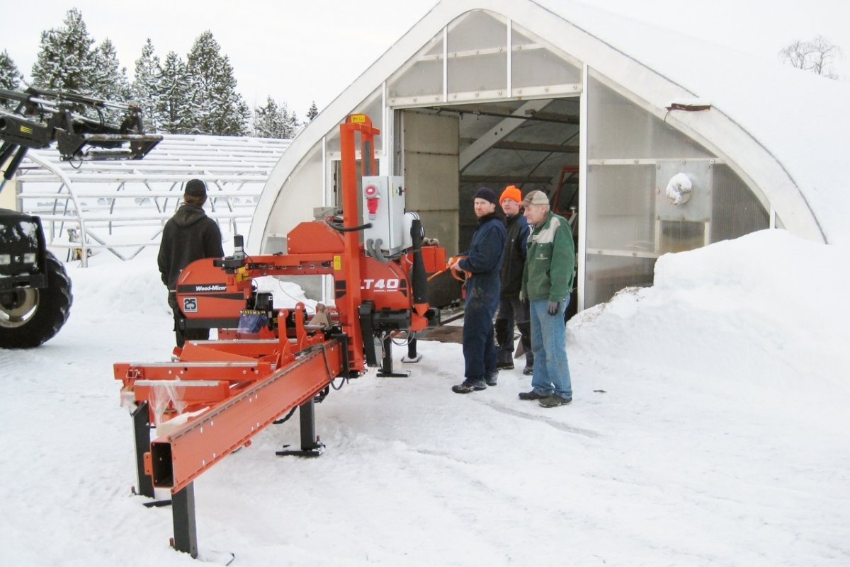 Meðfylgjandi myndir tók Rúnar Ísleifsson skógarvörður þegar sögin nýja var tekin út úr gámnum í síðustu viku og flutt inn í gróðurhús með hjálp vörubílskrana og forláta Ferguson sem þjónað hefur vel og lengi á Vöglum og gerir enn. Nú er unnið að því að setja vélina upp og stefnt að því að setja hana í gang síðar í vikunni.