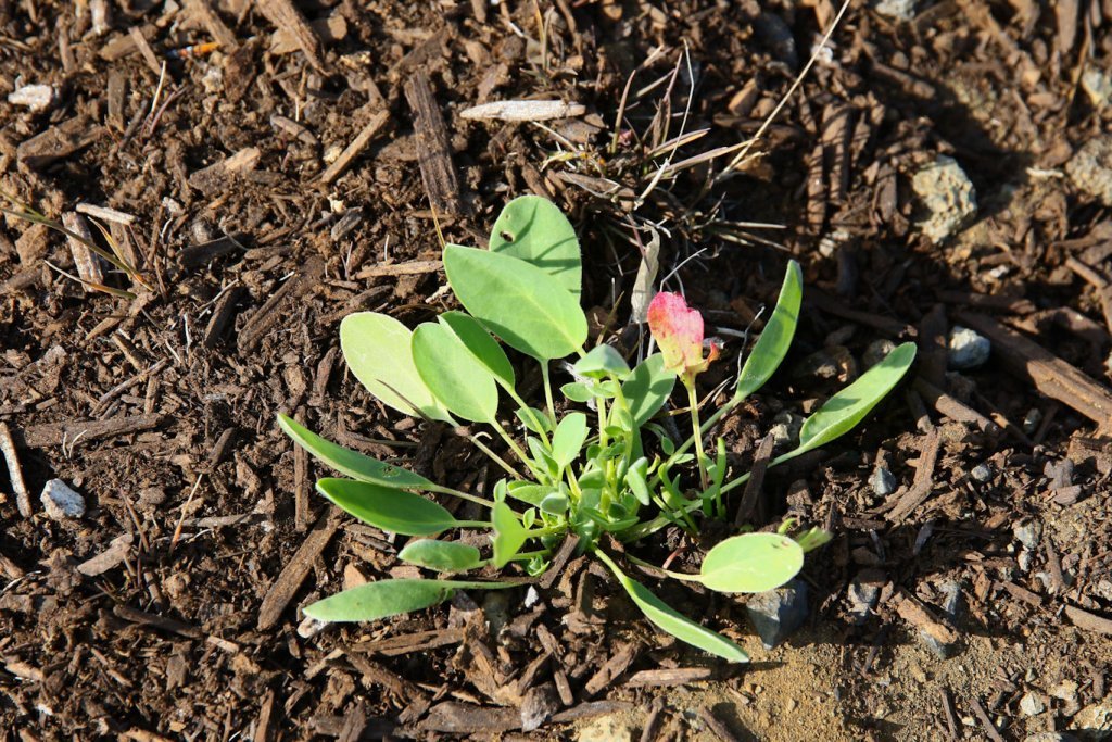 Maríuskór er ein sjö belgjurtategunda sem nú eru reyndar með moltu á Hólasandi. Niturbindandi plöntur geta hjálpað birki að komast upp á sandinum með því að láta því í té nitur til vaxtar. Ljósmynd: Pétur Halldórsson