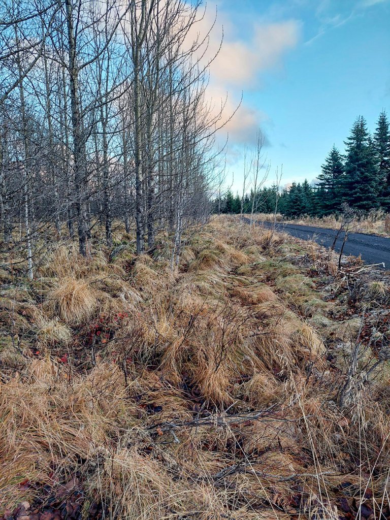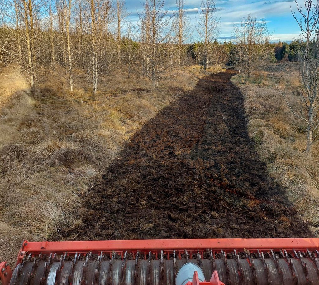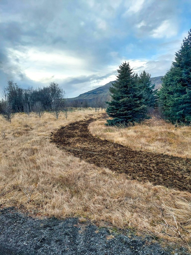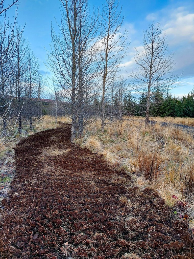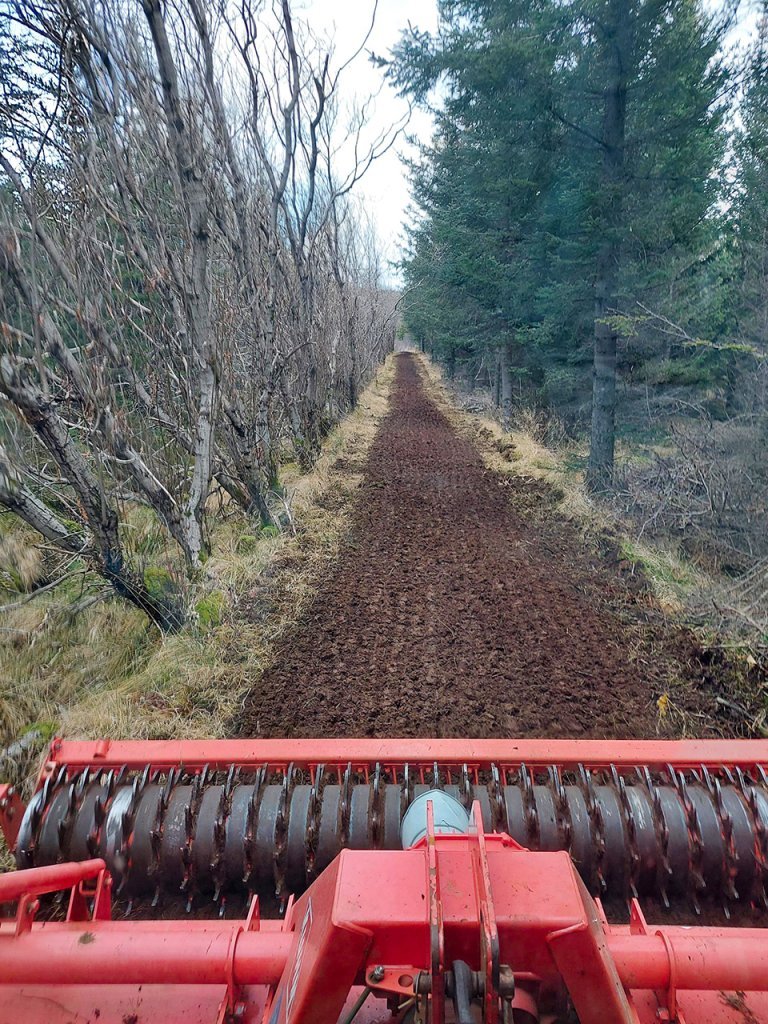 Skíðagöngubraut herfuð í Haukadalsskógi nú í nóvember. Milt haust hefur hentað vel til vinnu í skógum landsins en skíðagöngufólk er örugglega farið að bíða eftir snjónum. Ljósmynd: Ægir Freyr Hallgrímsson