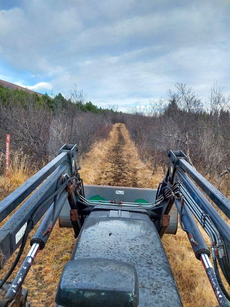Skíðagöngubraut herfuð í Haukadalsskógi nú í nóvember. Milt haust hefur hentað vel til vinnu í skógu…