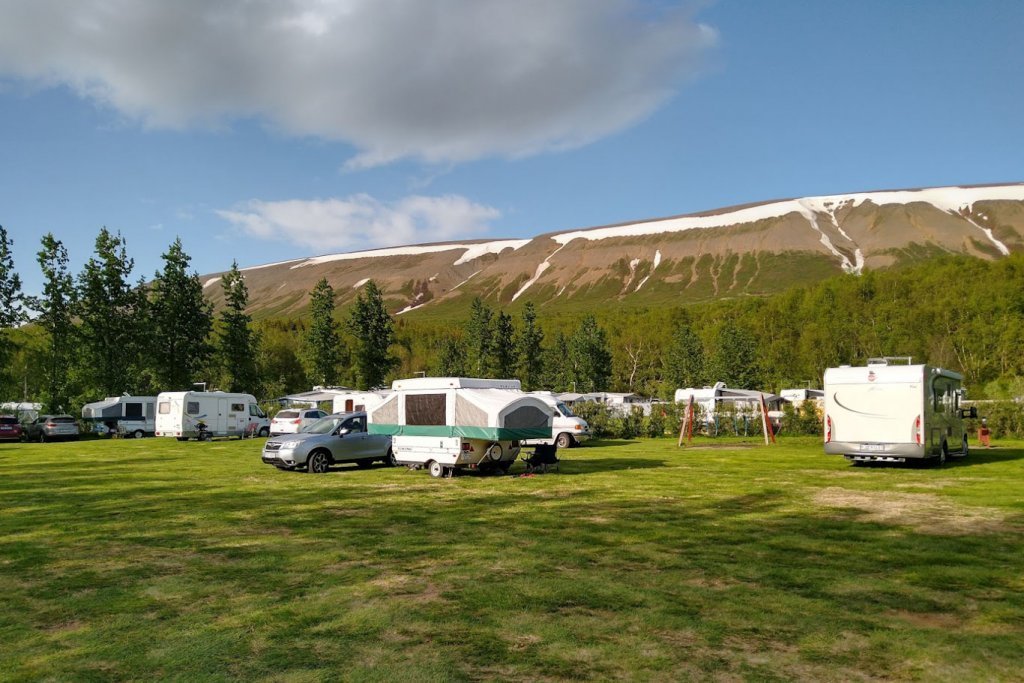 Aldrei hafa fleiri gist tjaldsvæðin í Vaglaskógi í júnímánuði en í ár. Myndin er tekin í Flatagerði, syðst í Vaglaskógi. Ljósmynd: Pétur HalldórssonVaglaskógur í Fnjóskadal er meðal fjölsóttustu skóga á Íslandi. Stærð skóglendisins er rétt um 4,5 ferkílómetrar. Árlega koma þúsundir