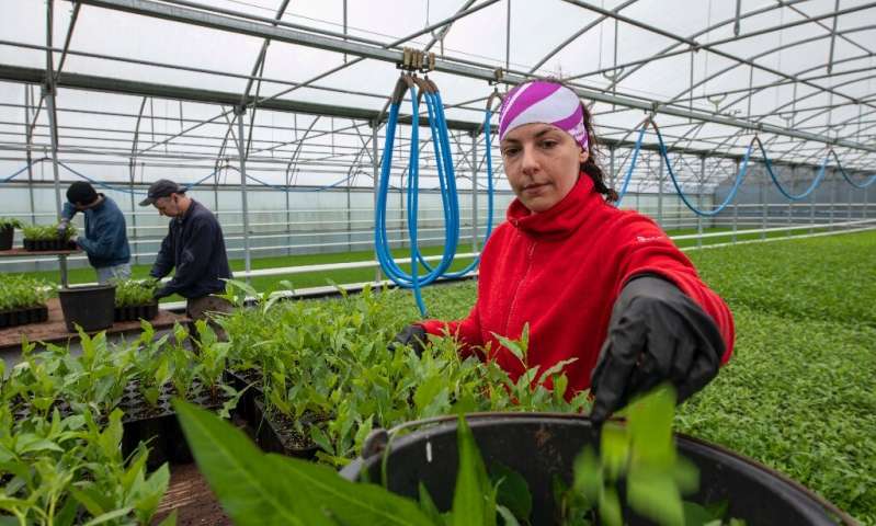 Fræplönturnar eru ræktaðar innandyra í þrjá mánuði áður en þær eru færðar út.