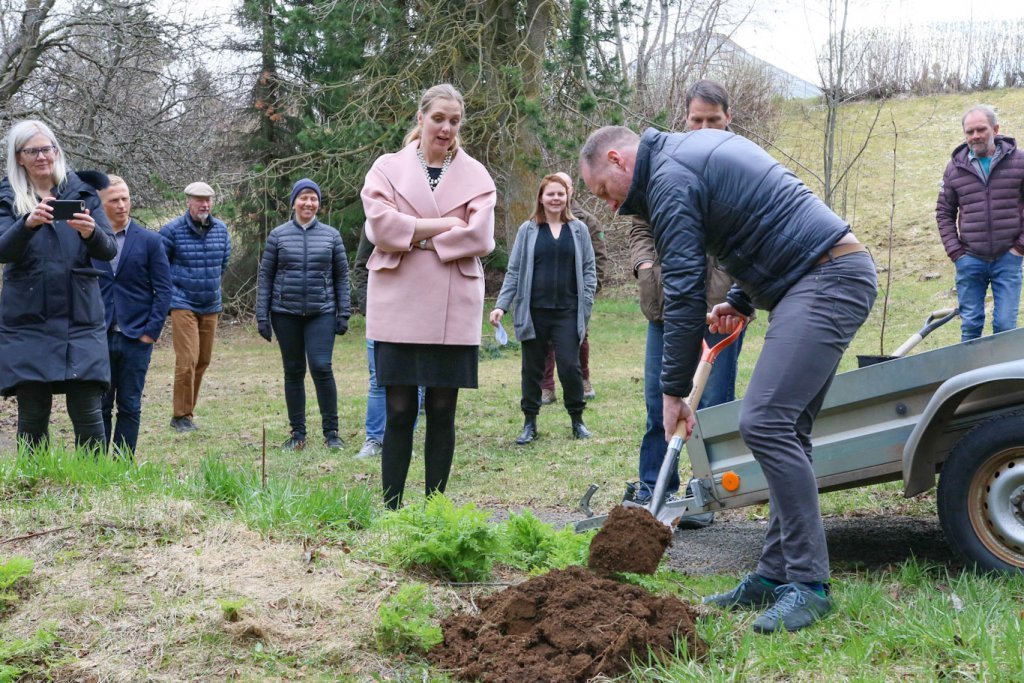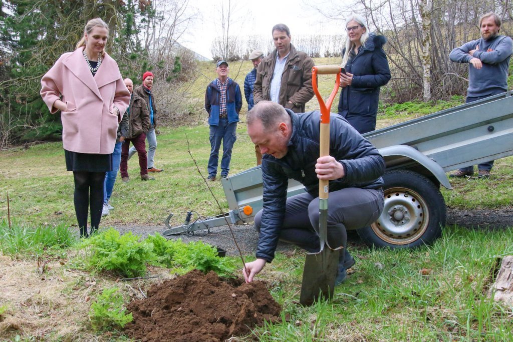 Við undirritun samkomulagsins í morgun voru viðstaddir fulltrúar þeirra sem að verkefninu standa. Að undirritun lokinni gróðursetti ráðherra birkiplöntu í garðinn við Gömlu-Gróðrarstöðina. Þetta er vefjaræktuð rauðblaða birkiplanta af nýju yrki sem Þorsteinn Tómasson erfðafræðingur hefur ræktað og kallast 'Hekla'. Að sjálfsögðu var notuð molta við gróðursetninguna, bæði blandað saman við jarðveginn í holunni og dreift í kringum plöntuna.