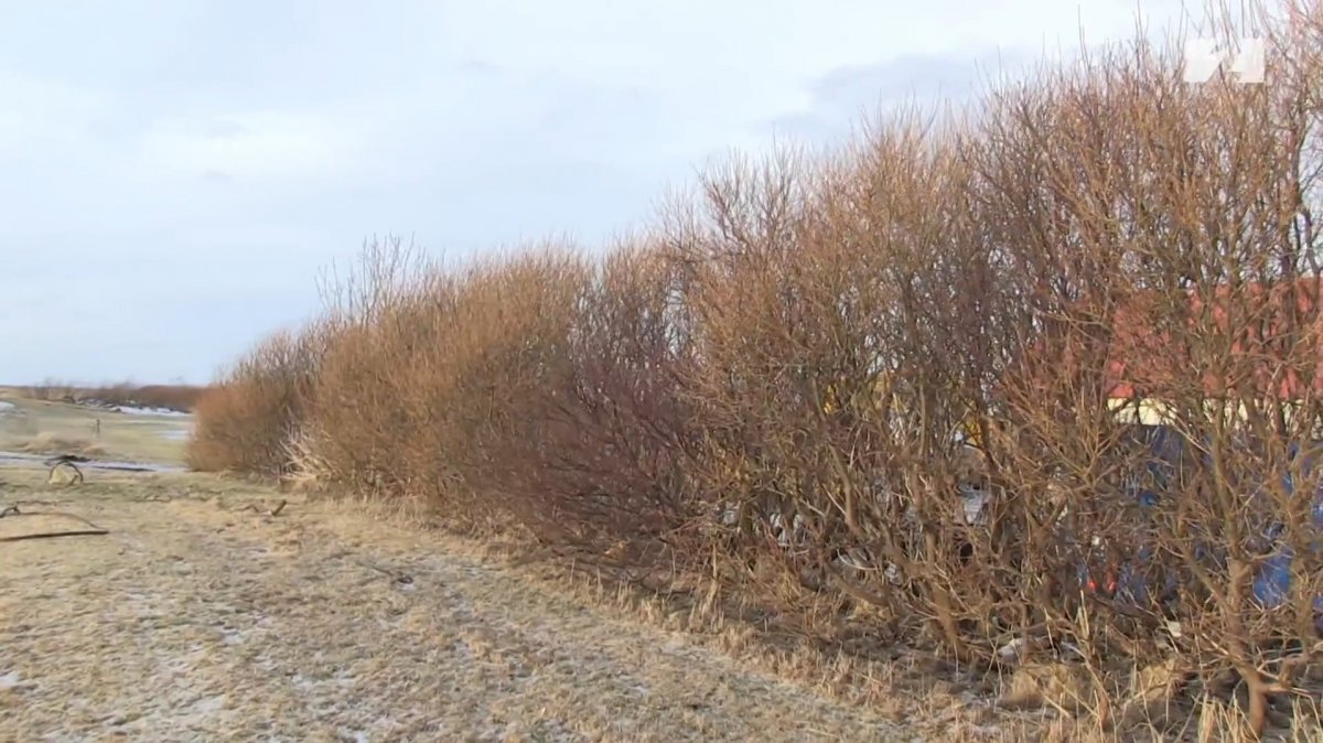 Þótt skjólbelti sé ekki viðameira og fjölbreyttara en þetta veitir það mikið skjól og getur gert gæfumuninn í stórviðrum eins og gengið hafa yfir landið að undanförnu. Skjámynd úr frétt Stöðvar 2