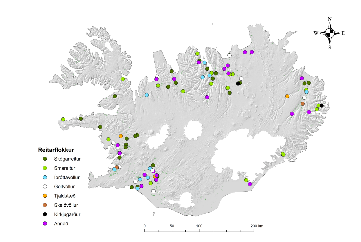 Reitirnir sem Sigríður gerði úttekt á voru 93 talsins, lítið færri en við upphaflega úttekt Björns. Samtals þöktu þeir um 65 hektara lands. Örlög reitanna í dag eru með æði ólíkum hætti, og eins eru þau hlutverk sem þeir gegna í dag mjög ólík. Hún tók saman hlutverkin sem þeir gegna í dag og er skemmtilegt að sjá hversu fjölbreytt þau eru. Allt frá skjólbeltum við íþróttavelli til lunda sem veita syrgjendum skjól í kirkjugörðum landsins. Á meðfylgjandi korti má sjá hlutverk nokkurra reita og dreifingu um landið.