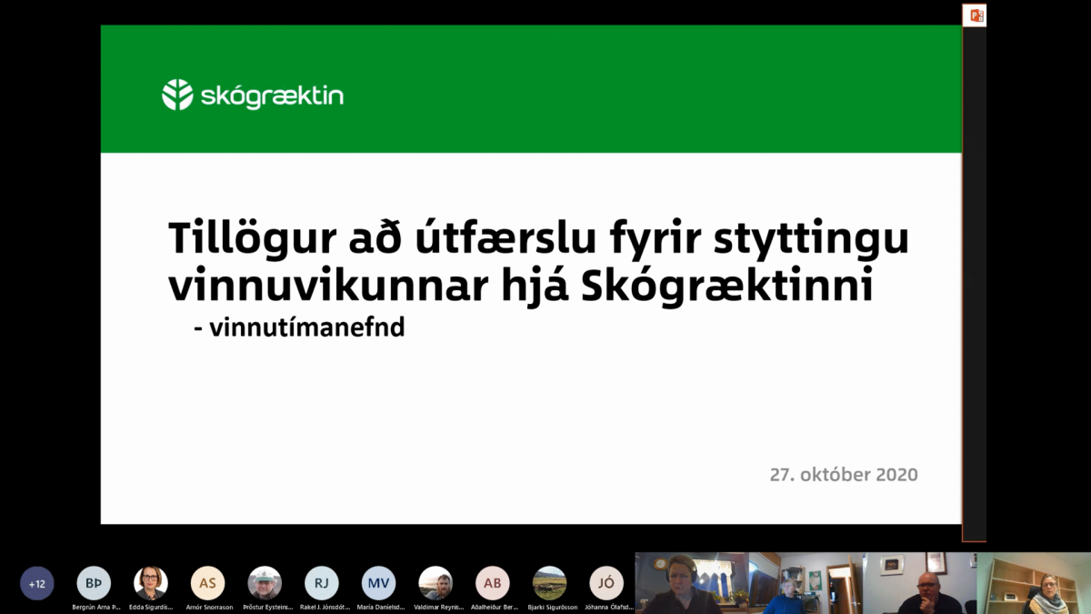Á vefnum betrivinnutimi.is er lýst verkferlum sem mælt er með að fylgt sé við innleiðingu styttri vinnuviku. Eftir þessu var farið hjá Skógræktinni og byrjað á að stofna vinnutímanefnd. Hún greindi starfsemi stofnunarinnar og í framhaldi af því var haldinn starfsmannafundur gegnum fjarfundabúnað. Þar kom að góðum notum sú reynsla sem starfsfólk Skógræktarinnar hefur öðlast undanfarin ár af fjarfundum. Stofnunin er dreifð um landið og fundir hafa að verulegu leyti verið haldnir rafrænt í nokkur ár hjá Skógræktinni, meðal annars fundir framkvæmdaráðs, sem er skipað sviðstjórum auk skógræktarstjóra og fagmálastjóra.