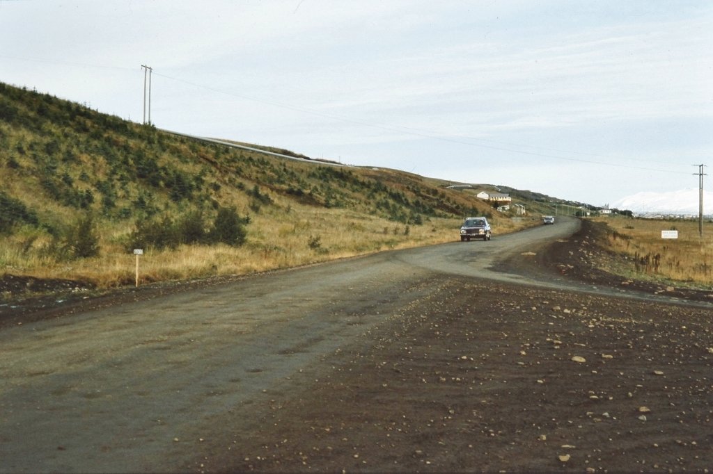 Eldri myndin sem hér sést að ofan var tekin 1981. Þá eru tæpir tveir áratugir liðnir frá gróðursetningunni og greinilegt að trén hafa ekki tosast mikið upp á hverju ári. Hallgrímur Indriðason, skipulagsfulltrúi Skógræktarinnar, sem var framkvæmdastjóri Skógræktarfélags Eyfirðinga um langt árabil, segir að þetta hafi verið mjög þéttar gróðursetningar. Talsverð afföll hafi orðið enda þurftu trén að koma sér upp úr kafgrasi. Reynt hafi verið að reyta frá trjánum og tilraunir gerðar með að klippa niður tjörupappa og leggja við trén til að halda grasinu frá.