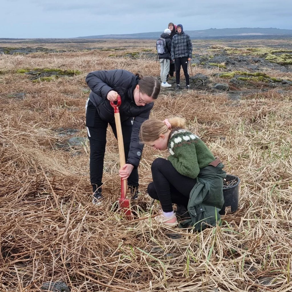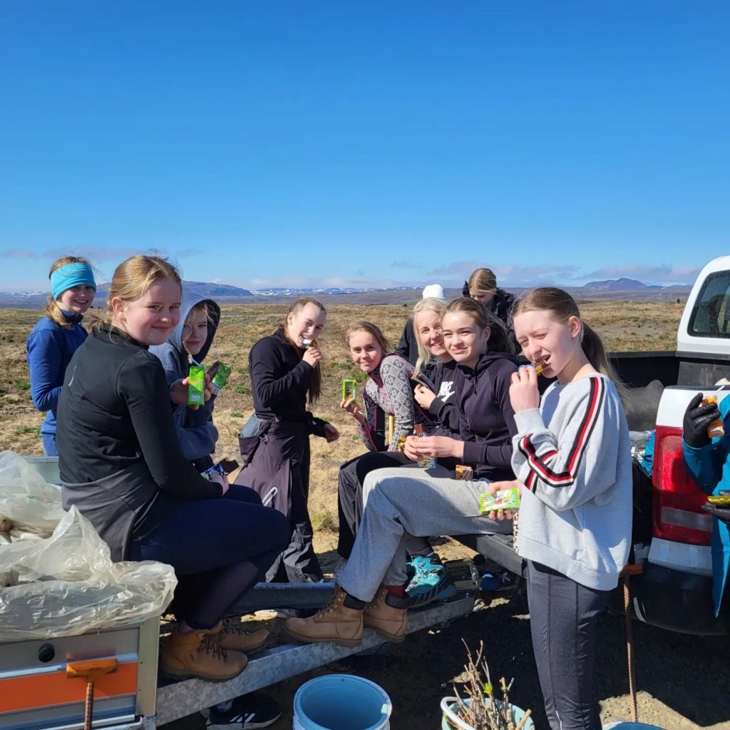 Kátir nemar FSU við gróðursetningu á Hafnarsandi. Ljósmynd: Ellert Arnar Marísson