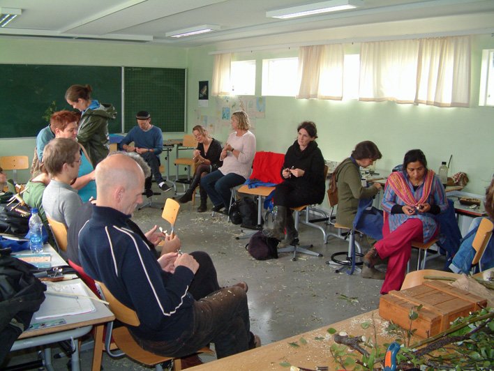 Starfsfólk Waldorfskólans Sólstafir sótti tveggja daga námskeið í grænum skógarnytjum í síðustu viku. Þar þjálfuðu þeir sig í að vinna með ferskt garða- og skógarefni sem nýta má í skólastarfi og hægt er að nálgast í nærumhverfi skólanna. Unnið var með grannt greinaefni og því breytt í alls konar verkefni sem auðvelt er að nýta í vinnu með nemendum á öllum skólastigum.