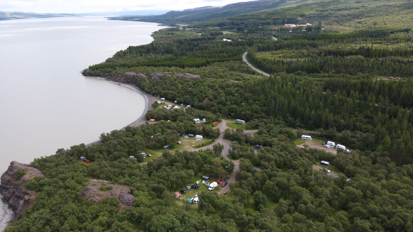 Mjög mikil aðsókn hefur verið að tjaldsvæðunum á Hallormsstað og í Vaglaskógi í sumar. Hér sést yfir Höfðavík í Hallormsstaðaskógi á góðum degi. Ljósmynd: Anna Birna Jakobsdóttir