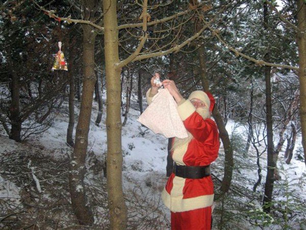 Fjölskyldurnar völdu sér síðan jólatré; ýmisst rauðgerni, blágreni, stafafuru eða sitkagreni, allt eftir smekk og þörfum. Stekkjarstaur gekk með börnin í gegnum skóginn, útdeildi gjöfum og týndi niður úr trjánum salgætispoka handa börnum og unglingum. Af þessu tilefni smíðaði Ólafur trektina hér að neðan svo gestirnir gætu sett jólatré sín í net og komið þeim fyrir í bílum sínum.