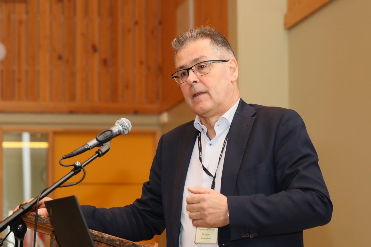 Árni Bragason landgræðslustjóri í ræðustól á Fagráðstefnu skógræktar sem Landgræðslan tekur þátt í að skipuleggja og halda að þessu sinni. Ljósmynd: Pétur Halldórsson