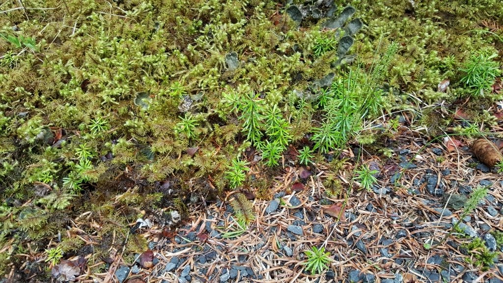 Vísir að þinteppi í Þjórsárdal. Í þinskógum sáir þinurinn sér í þéttar breiður í skógarbotni og nýgræðingurinn bíður þess að geta vaxið upp þegar eldri tré falla.