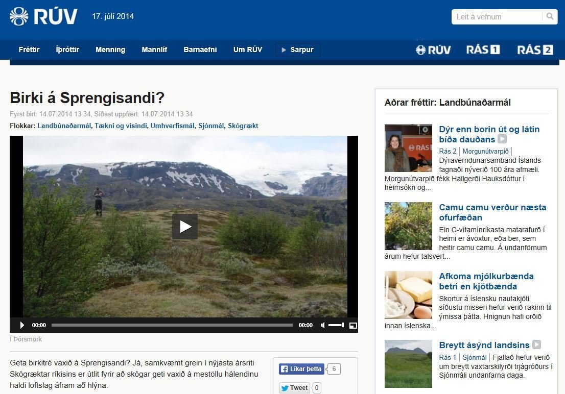 Í þættinum Sjónmáli á Rás 1 hefur undanfarna daga verið fjallað um breytt vaxtarskilyrði trjágróðurs á Íslandi. Á mánudag kom Björn Traustason, landfræðingur hjá Rannsóknastöð Skógræktar, Mógilsá, í þáttinn og sagði frá þeim áhrifum sem hlýnandi lotftslag hefur í þessum efnum og tilefnið var greinin sem birtist í nýútkomnu Ársriti Skógræktar ríkisins, Geta tré vaxið á Sprengisandi? Björn og meðhöfundar hans að greininni, Bjarki Þór Kjartansson og Þorbergur Hjalti Jónsson, sérfræðingar hjá Skógræktinni, rekja hvernig þróun gróðurfars gæti orðið á landinu með þeirri hlýnun sem spáð er að verði á næstu áratugum og öldum. Landfræðileg greining á skógarmörkum sýnir að fræðileg gróðurmörk þurfa ekki að hækka mjög mikið til þess að möguleg útbreiðslusvæði trjágróðurs stækki stórlega á landinu.