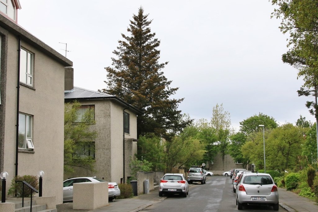 Trjágróður við Kjartansgötu í Reykjavík. Stór barrtré í þéttbýli eru öflugir lofthreinsarar, hreinsa bæði mengunarefni og ryk. Lauftrén eru líka dugleg en þó einkum þegar þau standa laufguð yfir sumarið.
