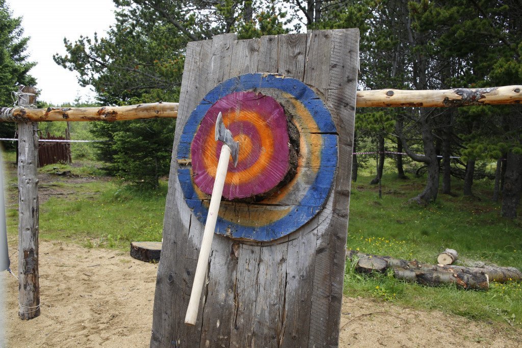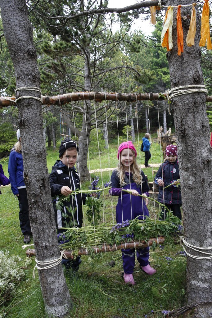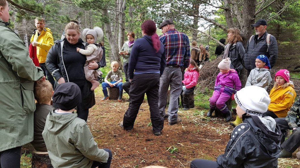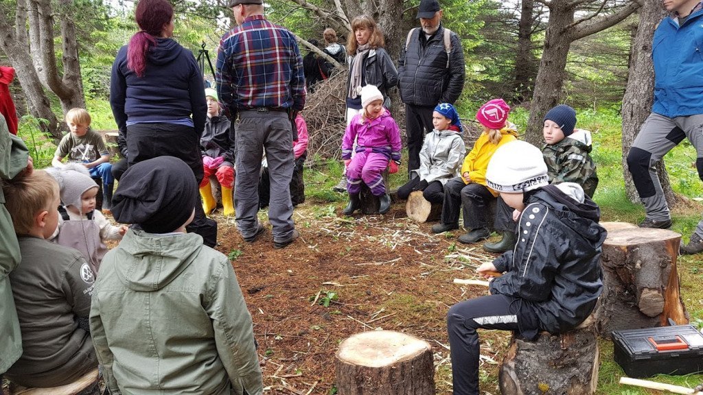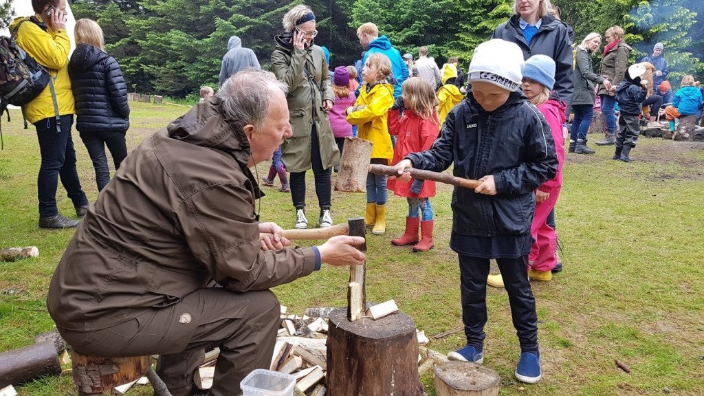 Meðfylgjandi myndir tók Hreinn Óskarsson á Skógarleikunum, nema myndina af börnunum að vefa úr lúpínu og myndina af axarkastspjaldinu. Þær tók Guðfinna Mjögll Magnúsdóttir. Myndirnar segja meira en mörg orð.