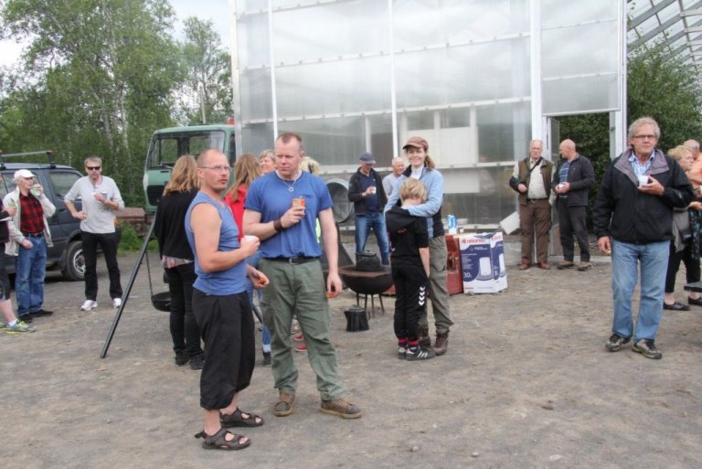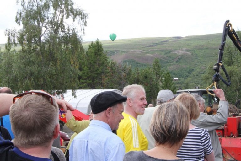 Nú er gróðrartíðin svo mikil að jafnvel elstu birkitrén sýna hæðarvöxt. Eldiviðarvélin á Vöglum fangaði athygli gestanna meira en loftbelgur sem sveif yfir dalnum og ekki eru slíkir þó algeng sjón hérlendis.