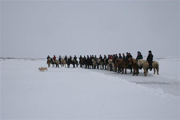 Hestamönnum á Fljótsdalshéraði var boðið að koma og vera viðstaddir þegar Höfðavatn hið nýja var formlega tekið í notkun.  29 knapar með hesta sína og hátt í 20 manns að auki mættu þegar klipp var á boða og reiðleiðir sem hafa verið lagðar á ísinn voru prófaðar.