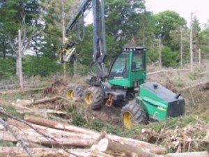 Í framhaldi af ferð Peters var ákveðið að fá til landsins skógarhöggsvél til reynslu og spreyta sig í sitkagreniskógunum á Stálpastöðum í Skorradal. Vélin kom til landsins í gær og farið verður með hana í Skorradal á morgun. Í þessari fyrstu atrennu mun vélin vinna á Stálpastöðum til 21. desember.