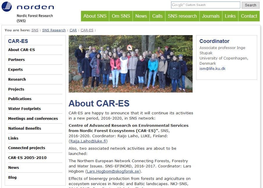 CAR-ES er opið samstarfsnet þar sem saman kemur skógvísindafólk frá Norðurlöndunum og Eystrasaltsríkjunum í því augnamiði að safna saman vísindalegri þekkingu um áhrif skógnýtingar á vistkerfisþjónustu helstu skógvistkerfa. Þeirri vitneskju er ætlað að nýtast til stefnumótunar og ákvarðana í bæði opinberri stjórnsýslu og hjá fyrirtækjum.