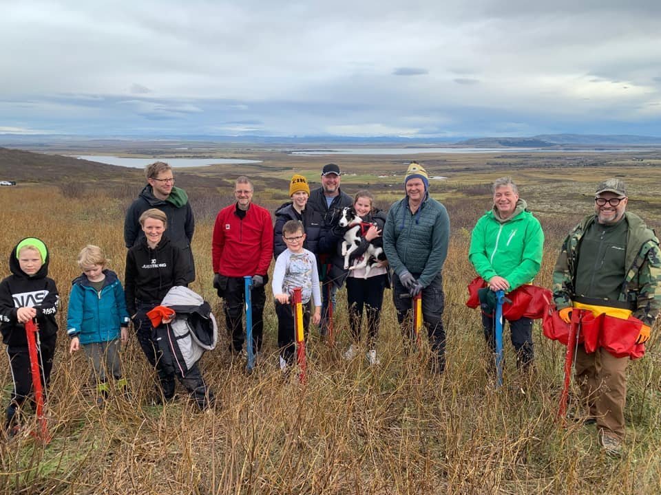 Glaðbeittir styrkþegar Vorviðar hjá Lionsklúbbi Laugardals við gróðursetningu sumarið 2021. Ljósmynd aðsend