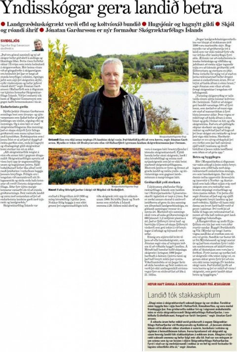 Í Laugardagsblaði Morgunblaðsins var rætt við Jónatan Garðarsson sem kjörinn var formaður Skógræktarfélags Íslands á aðalfundi félagsins 27. ágúst. Fundurinn var haldinn á Stórutjörnum í Ljósavatnsskarði.