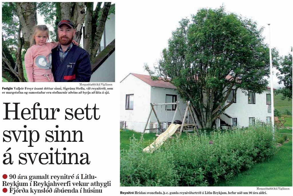 Morgunblaðið fjallaði í síðustu viku um gamalt reynitré sem stendur við íbúðarhúsið á bænum Litlu-Reykjum í Reykjahverfi í Þingeyjarsýslu. Tréð er snar þáttur í sögu heimafólksins á bænum sem stendur vörð um tréð. Reyniviður þessi er um 90 ára gamall og setur mikinn svip á bæinn á Litlu-Reykjum. Greinar sem þurft hefur að saga af trénu hafa verið notaðar til smíða.