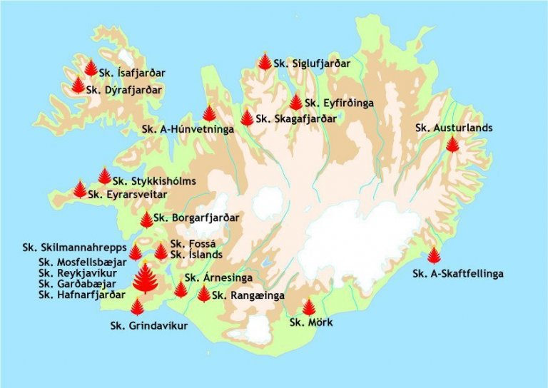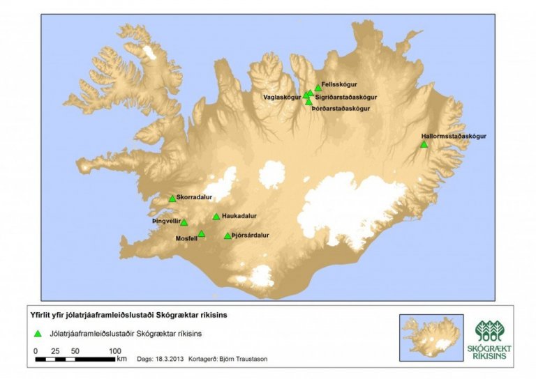 Íslensk jólatré eru í boði á mismunandi stöðum á Íslandi og flest tré eru annað hvort fengin hjá skógræktarfélögum eða Skógrækt ríkisins vítt og breitt um landið. Skógarbændur eru þó líka farnir að framleiða jólatré, aðallega þó á Austurlandi enn sem komið er. Hér fyrir neðan má sjá hvaðan íslensku jólatrén eru í aðalatriðum. Smellið á myndirnar til að sjá þær stærri og skýrari.