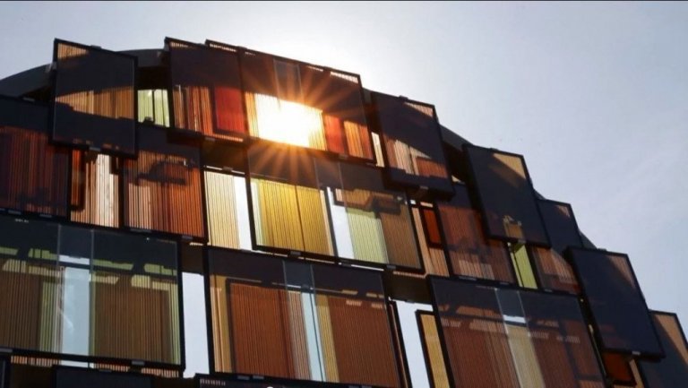 Svölu og hreinu lofti úr þessum tilbúna skógi er dælt um loftstokka inn í sali sýningarskálans og öll orka sem notuð er verður til á staðnum með hjálp sólarsellna af nýjustu tækni. Sellurnar hafa verið settar upp í mynd stórrar sólar á þaki skálans og þær eru af glænýrri gerð slíkra sellna.