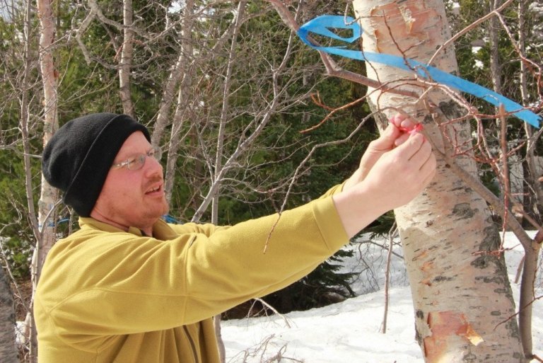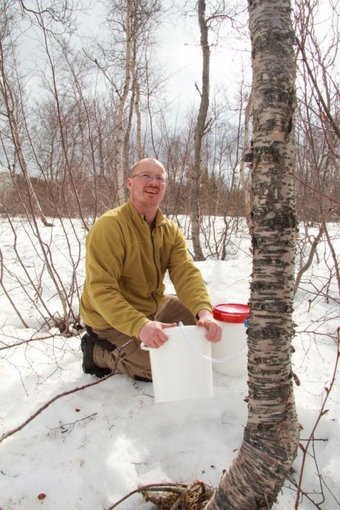 Í síðustu viku var settur aftöppunarbúnaður á alls 41 tré neðan við fræhúsið svokallaða á Vöglum sem stendur þar við starfstöð Skógræktar ríkisins í Vaglaskógi. Nokkuð er enn í að nægileg reynsla hafi fengist af slíkri safatöku hérlendis en Skógræktin gerir nú tilraunir bæði á Vöglum og á Tumastöðum í Fljótshlíð í samstarfi við Foss Distillery sem útvegar búnaðinn og tekur við safanum.