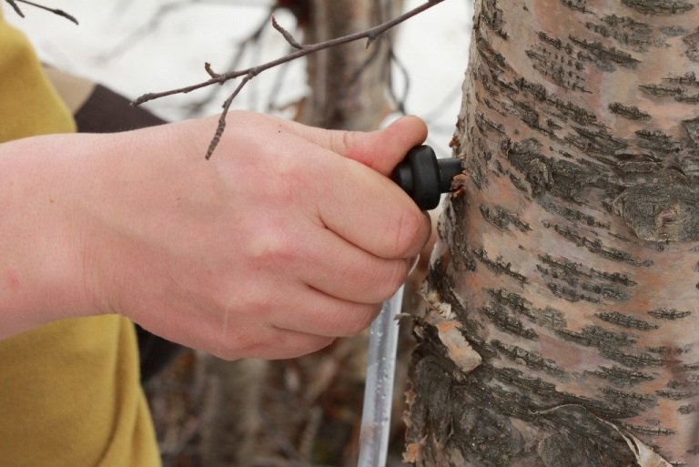 Reynt er að velja tré sem líta út fyrir að vera hraust og með heila og lifandi krónu. Ekki er mælt með að tappa af trjám sem eru grennri en 12-14 sm. Borað er í stofninn í innan við eins metra hæð með 12 mm trébor. Fundinn er sæmilega sléttur staður á berkinum, bornum vísað eilítið upp á við og borað varlega a.m.k. 6 sm inn í bolinn. Gott er að skola laust sag úr sárinu, til dæmis með úðabrúsa. Síðan er sérstökum tappa með slöngu þrýst með handafli inn í gatið og slegið létt á með hamri til að tappinn sitji þétt í gatinu, ekki þó of fast.
