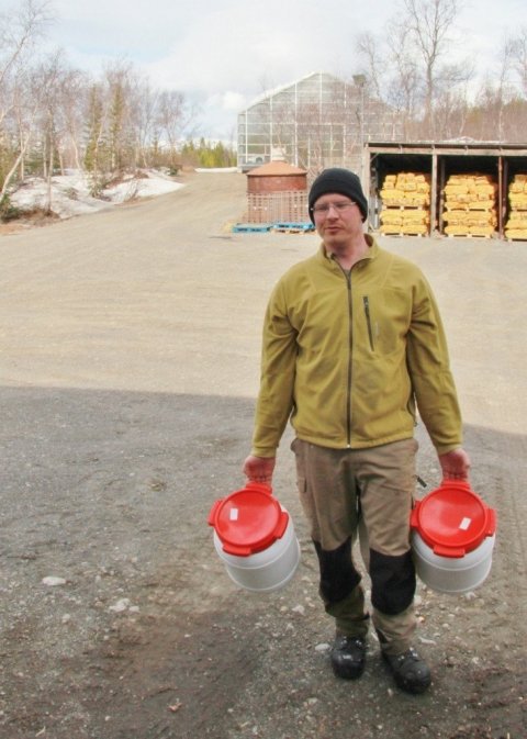 Í gær söfnuðust tæplega 30 lítrar úr trjánum á Vöglum. Benjamín telur að trén eigi að geta gefið talsvert meira í einu og hann vonast til að safastreymið aukist þegar trén springa betur út.