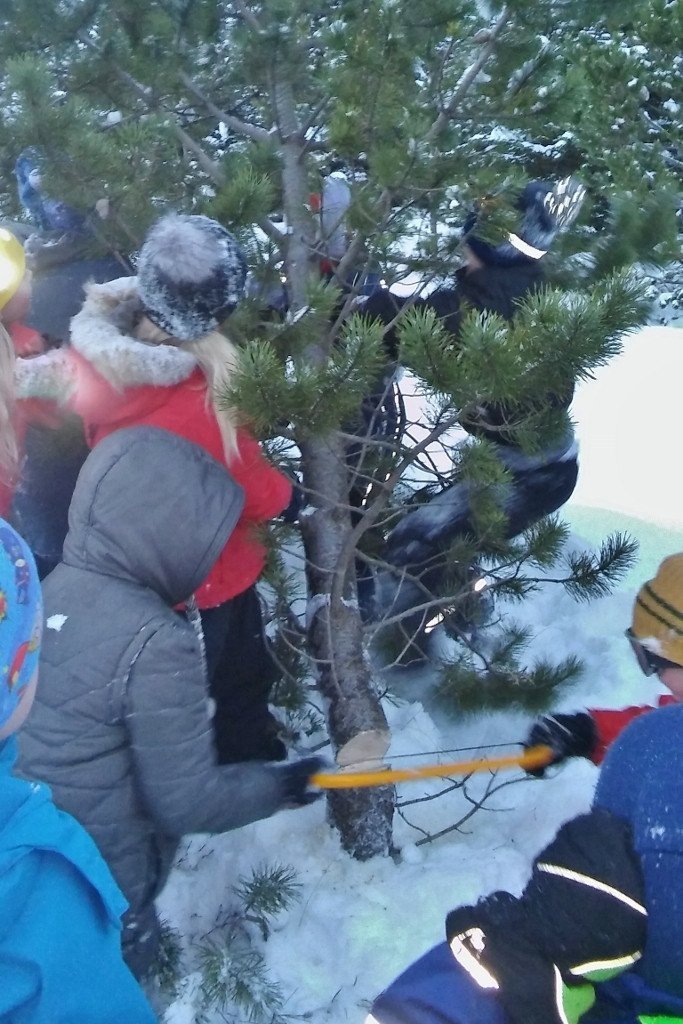 Sú hefð hefur skapast að grunnskólabörn úr Grunnskóla Borgarbyggðar á Hvanneyri komi í Skorradalinn á aðventunni að velja jólatré fyrir skólann sinn. Þau hafa líka séð um að velja og saga jólatré fyrir leikskólann Andabæ á Hvanneyri. Á þessu varð engin breyting þetta árið nema hvað nú komu elstu leikskólabörnin með til að sækja tré.