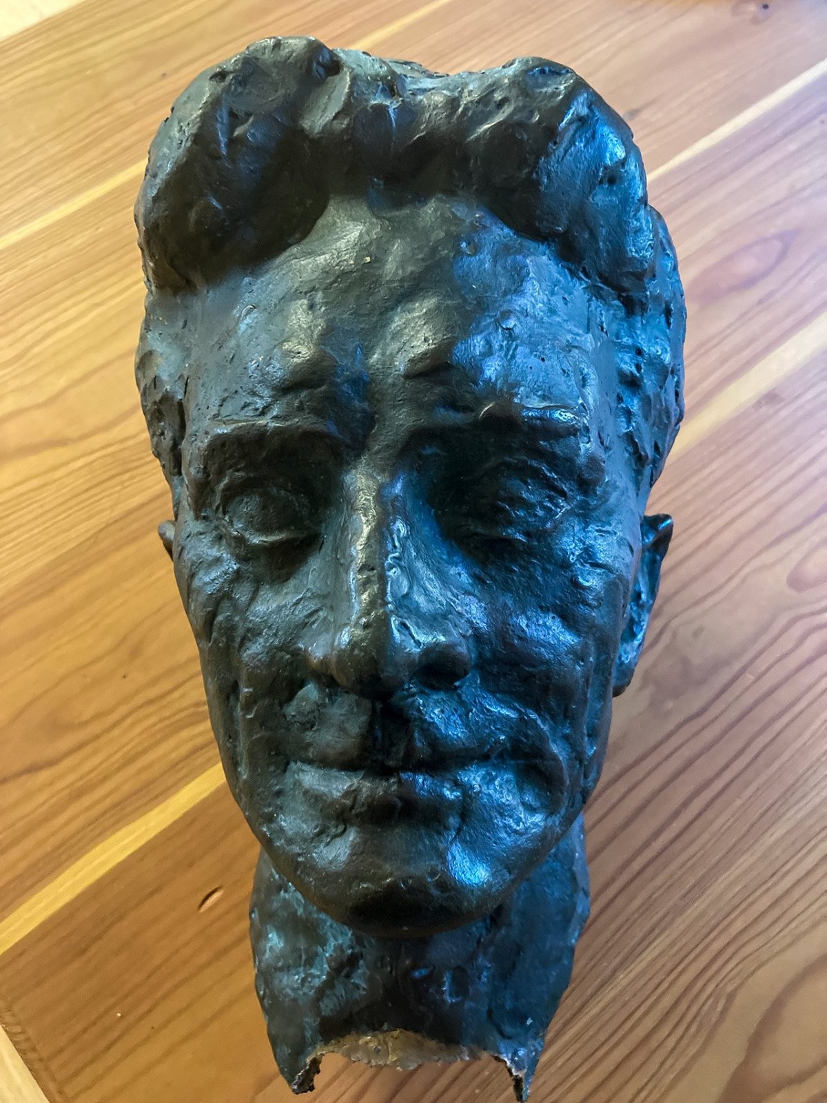 Höfuðið af brjóstmynd Þorsteins Valdimarssonar komið í örugga vörslu Skógræktarinnar á fallegu lerki…