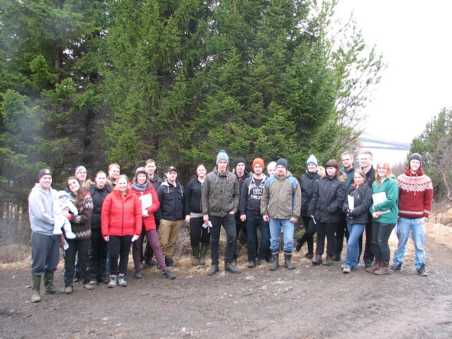 Á meðfylgjandi mynd sést hópurinn og í baksýn skógarlundur í Hvammi. Kennari í þessum áfanga er skógarvörðurinn á Vesturlandi, Valdimar Reynisson.