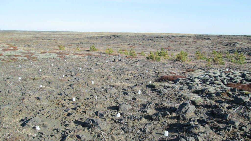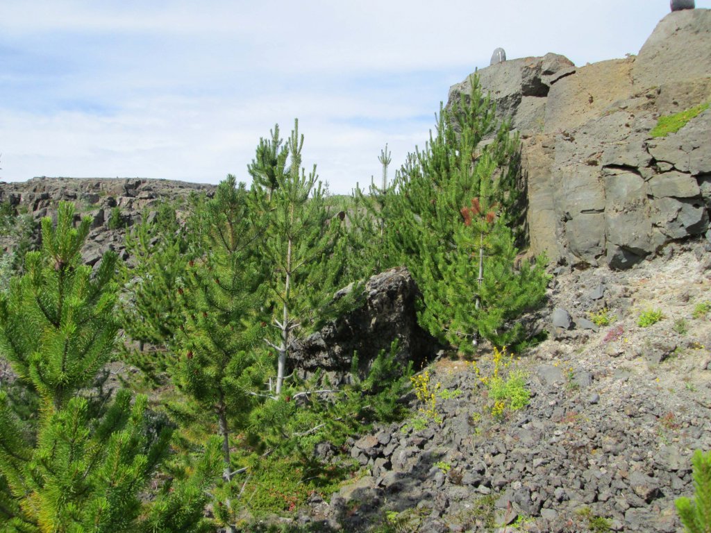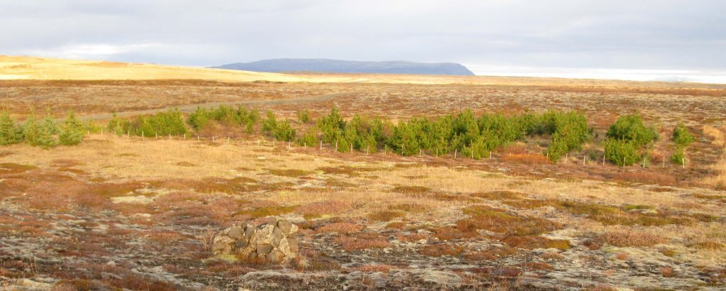 Meðfylgjandi myndir hefur Aðalsteinn Sigurgeirsson, forstöðumaður Rannsóknastöðvar Skógræktar ríkisins á Mógilsá, tekið á Hafnarsandi. Þær sýna vel hvaða árangri má ná með ræktun þar. Kortið gerði Björn Traustason, landfræðingur á Mógilsá.