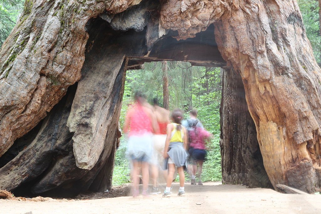 Göngufólk á leið gegnum tréð sumarið 2015. Mynd: Wikimedia Commons - Erlend Haddeland.