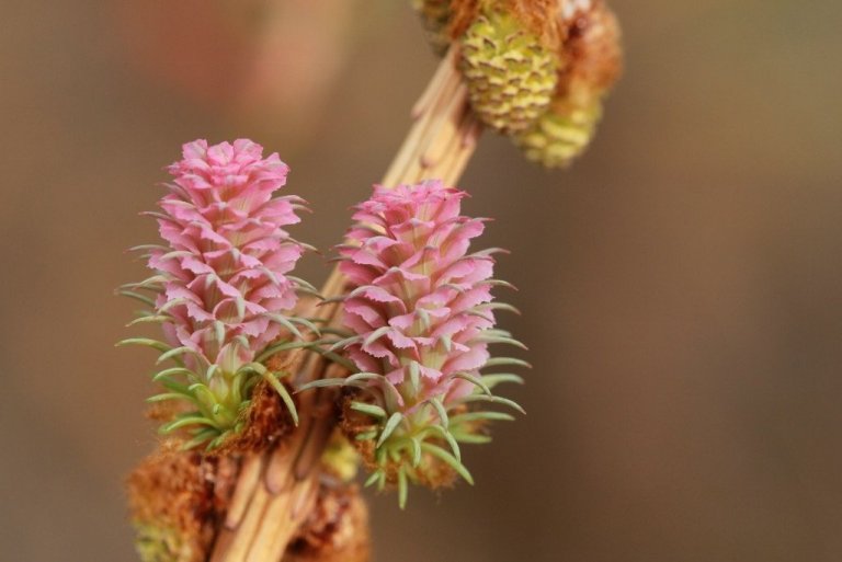 Blómin á lerkitrjánum eru nokkuð breytileg frá einu tré til annars hjá hvorri tegund fyrir sig en líka milli tegundanna. Sum kvenblómin eru algræn en önnur með mismikilli bleikri slikju yfir í bleikrauð. Lögun þeirra er líka nokkuð misjöfn en á evrópulerkinu eru kvenblómin heldur reistari. Þau standa ofan á greinunum en karlblómin neðan á. Frjóduftið er karrígult á litinn og þótt ekki finnist mikill ilmur af stöku blómi safnast hann þegar saman kemur og á blómgunartímanum liggur mildur blómailmur í lofti í fræhöllinni á Vöglum. Það er því skemmtilegt að geta tekið forskot á vorsæluna, andað að sér blómailmi og notið litadýrðar í hlýju gróðurhúsinu en lagt í leiðinni sitt að mörkum til að stuðla að ræktun á beinvöxnu og hraðvaxta lerki í íslenskum skógum.