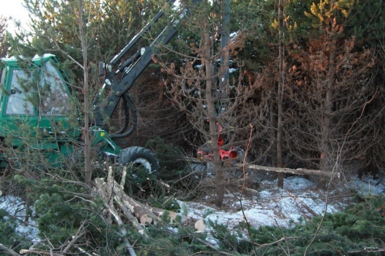 Fyrsti Íslendingurinn sem lýkur námi í skógarvélafræðum er nú kominn til starfa hér heima við skógarhögg, grisjun og aðra vélavinnu í skógum. Þessi fyrsti útlærði skógvélamaður landsins heitir Óskar Grönholm Einarsson og starfar Kristjáni Má Magnússyni, skógarverktaka í fyrirtækinu Sjö, níu, þrettán. Þessa dagana vinnur Óskar að rjóðurfellingu stafafurureits í Haukadal.