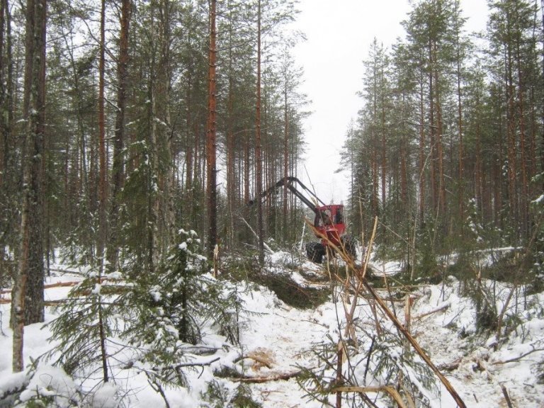 Það er frekar að bleyta geti verið til trafala í þúsund vatna landinu, segir Óskar, og því er veturinn þar hentugur tími til grisjunar og skógarhöggs. Þá sé líka minni hætta á að vélarnar skemmi gróður á skógarbotninum. Þetta eigi reyndar líka við hér. Gott sé að grisja og höggva skóg í snjó og frosti. Aðspurður hvort snjóþyngsli geti ekki hindrað vélavinnu í skógi segir hann að lítil hætta sé á því. Snjórinn þurfi að vera mjög mikill til þess því vélarnar komist um í býsna djúpum snjó. Þá sé líka yfirleitt auður blettur kringum stofninn á trjánum og því hægt að ná þeim niður við rót með vélinni þótt snjórinn sé djúpur í kring.