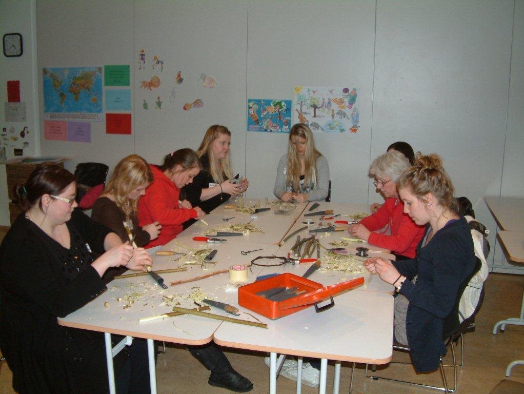 Í fyrradag bauð Lesið í skóginn upp á græna smiðju á starfsdegi ÍTR í Tónabæ. Þar þjálfuðu þátttakendur tálgutæknina og kynntust fersku skógarefni sem auðveldlega má finna í nærumhverfinu, s.s. í görðum. Efnið má síðan nota í einföld verkefni í leikjum og föndri með yngstu þátttakendunum í tómstundastarfi og skólaselum.